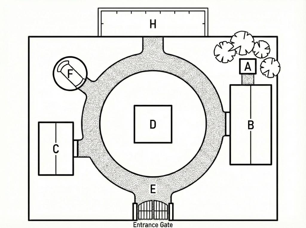 Finally, right at the top of the map, directly opposite the entrance but on the far side of the grounds, is the Solar Terrace. It’s a flat, paved area. Obviously, it’s used for viewing the sun during the day, but at night, we set up deck chairs there. It’s the highest point on the grounds, so it offers the widest view of the horizon—perfect for spotting shooting stars if you’re lucky.